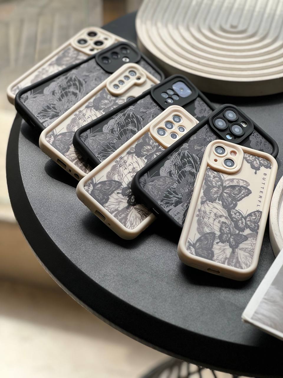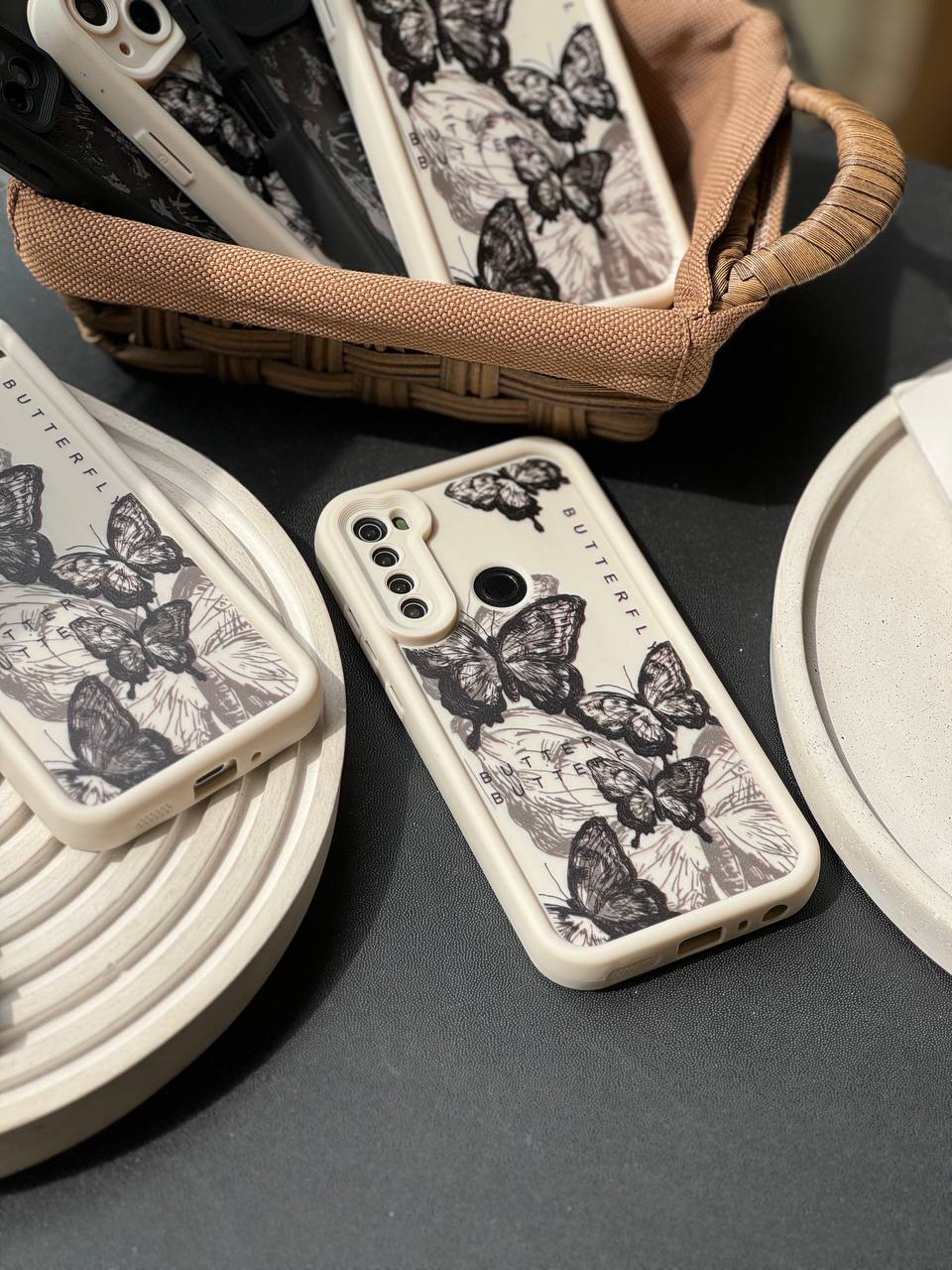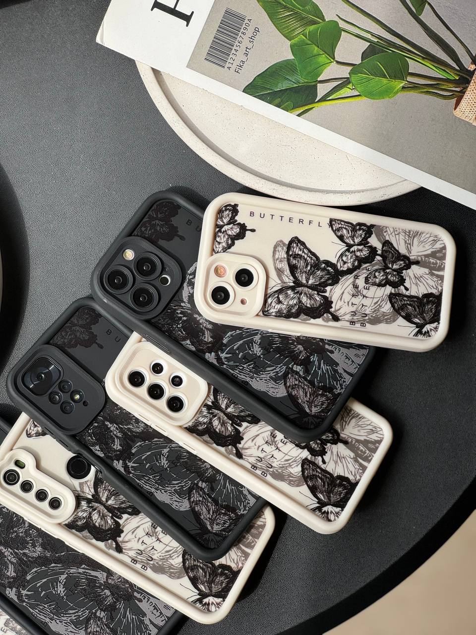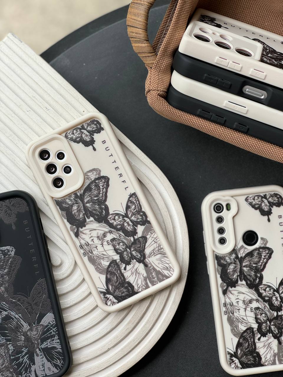 قاب پروانه ای سفید و مشکی آیفون سامسونگ شیاومی