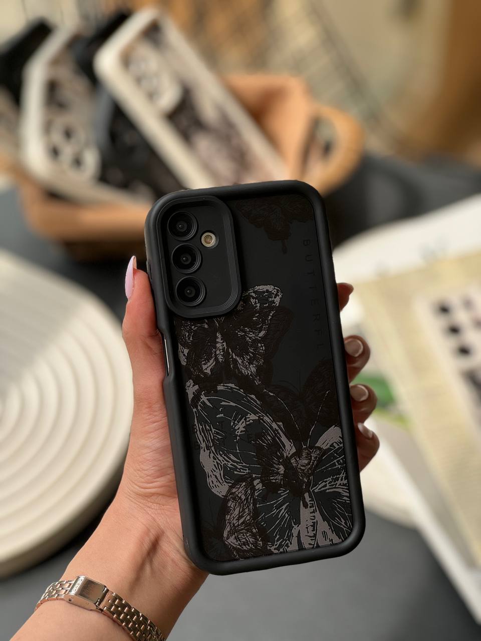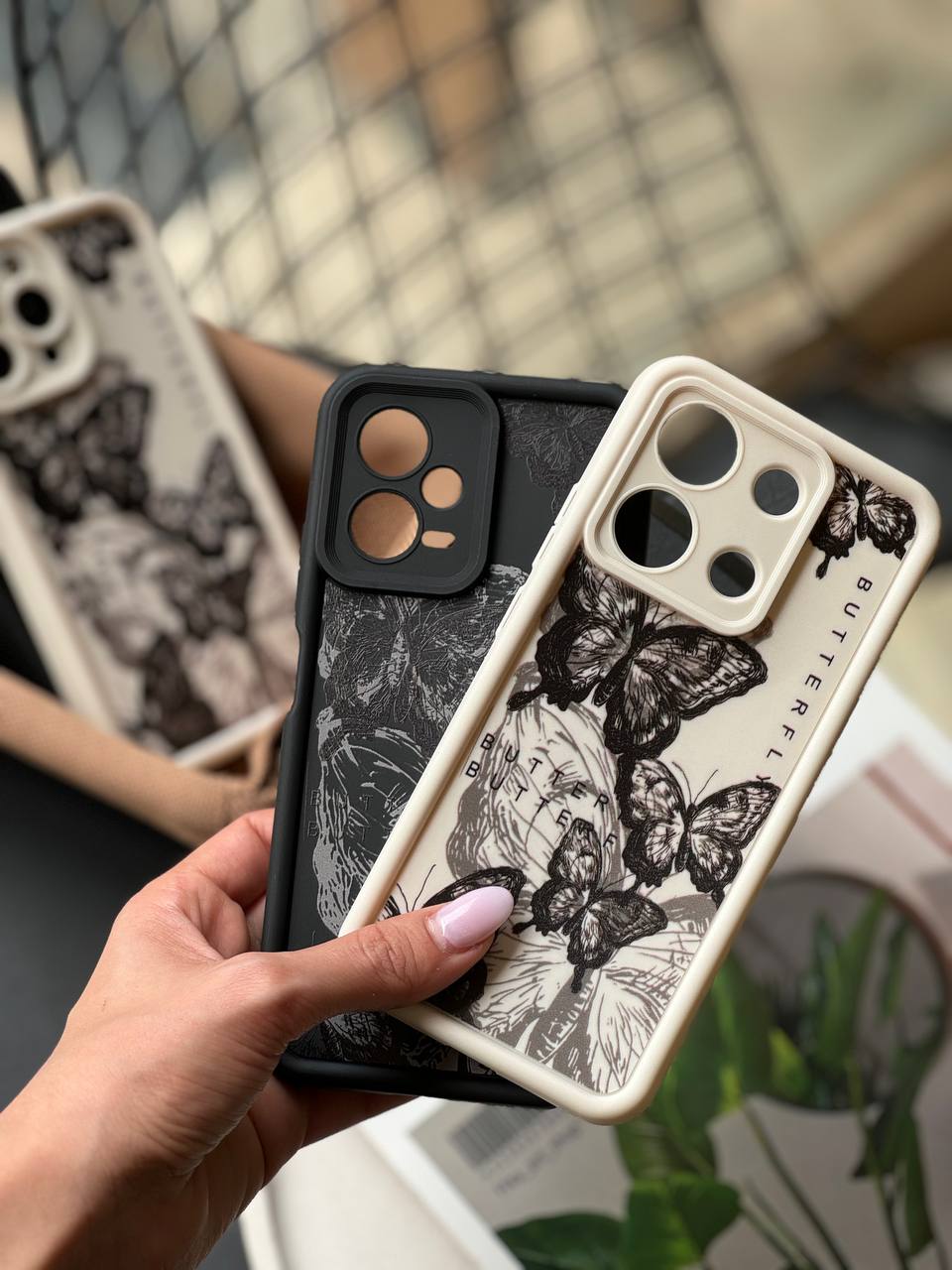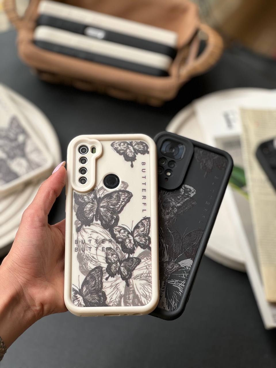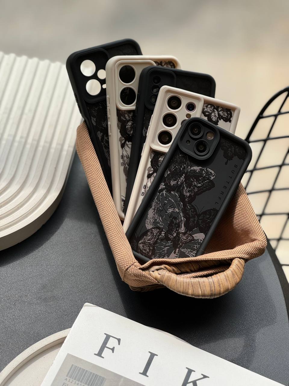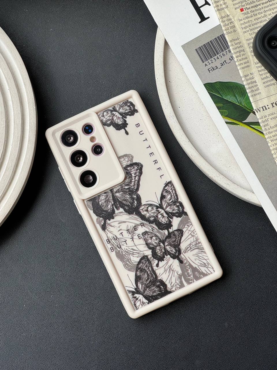 قاب پروانه ای سفید و مشکی آیفون سامسونگ شیاومی