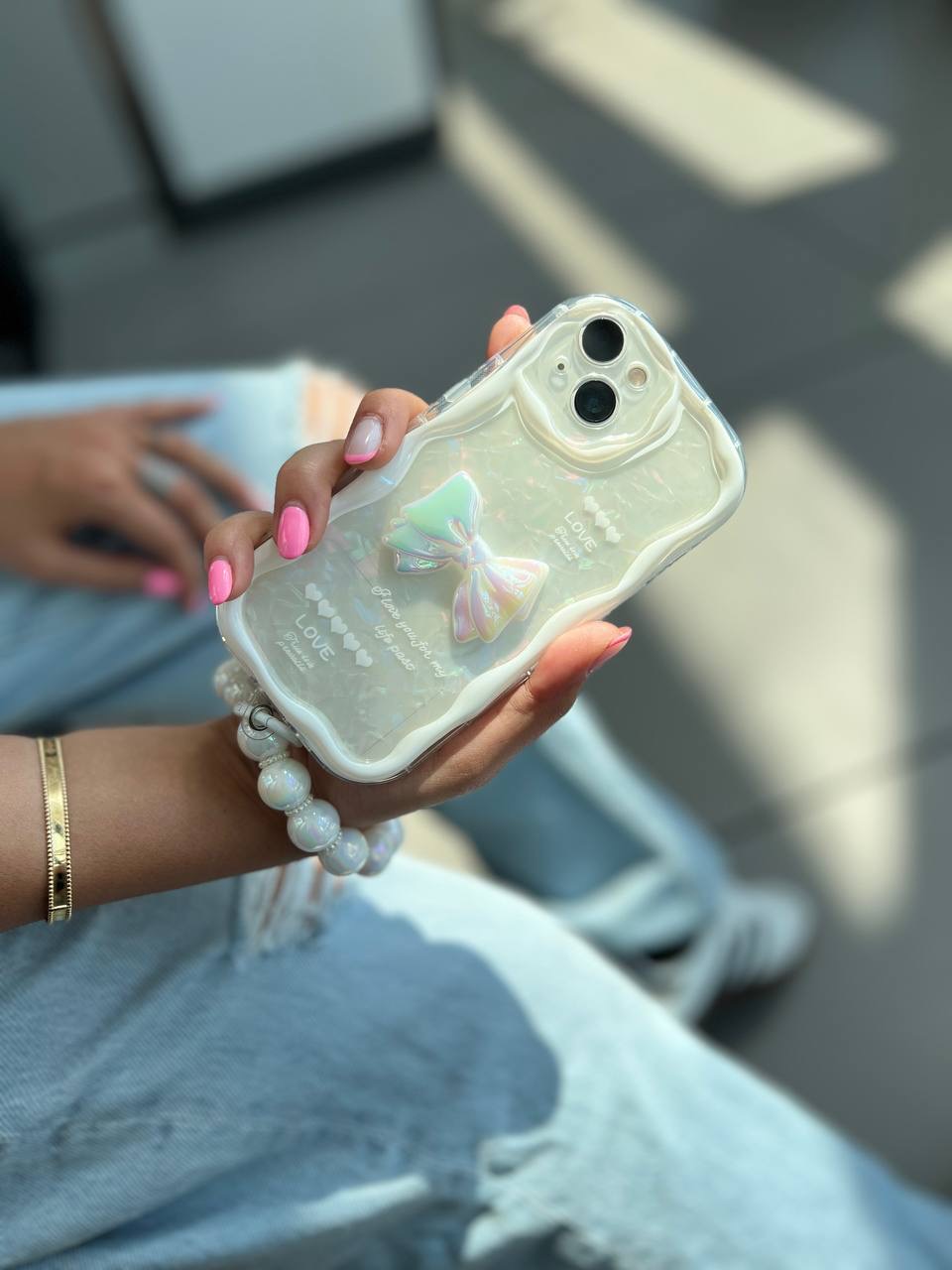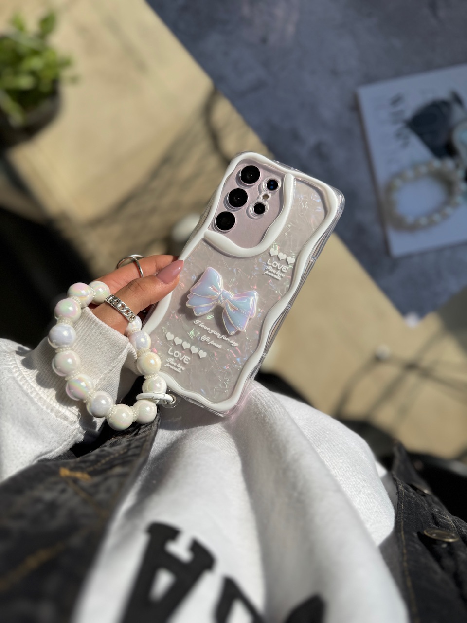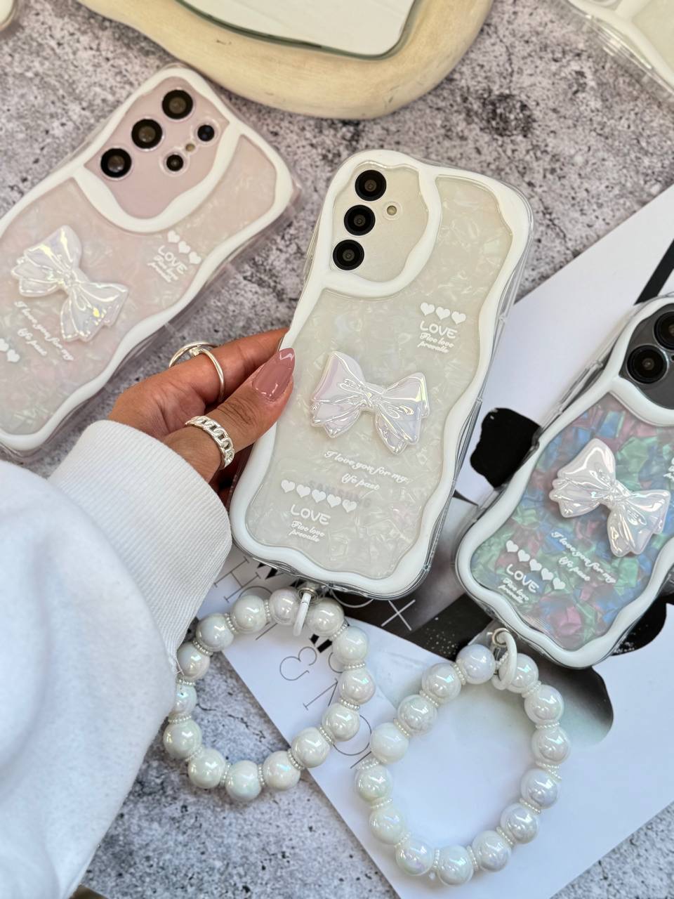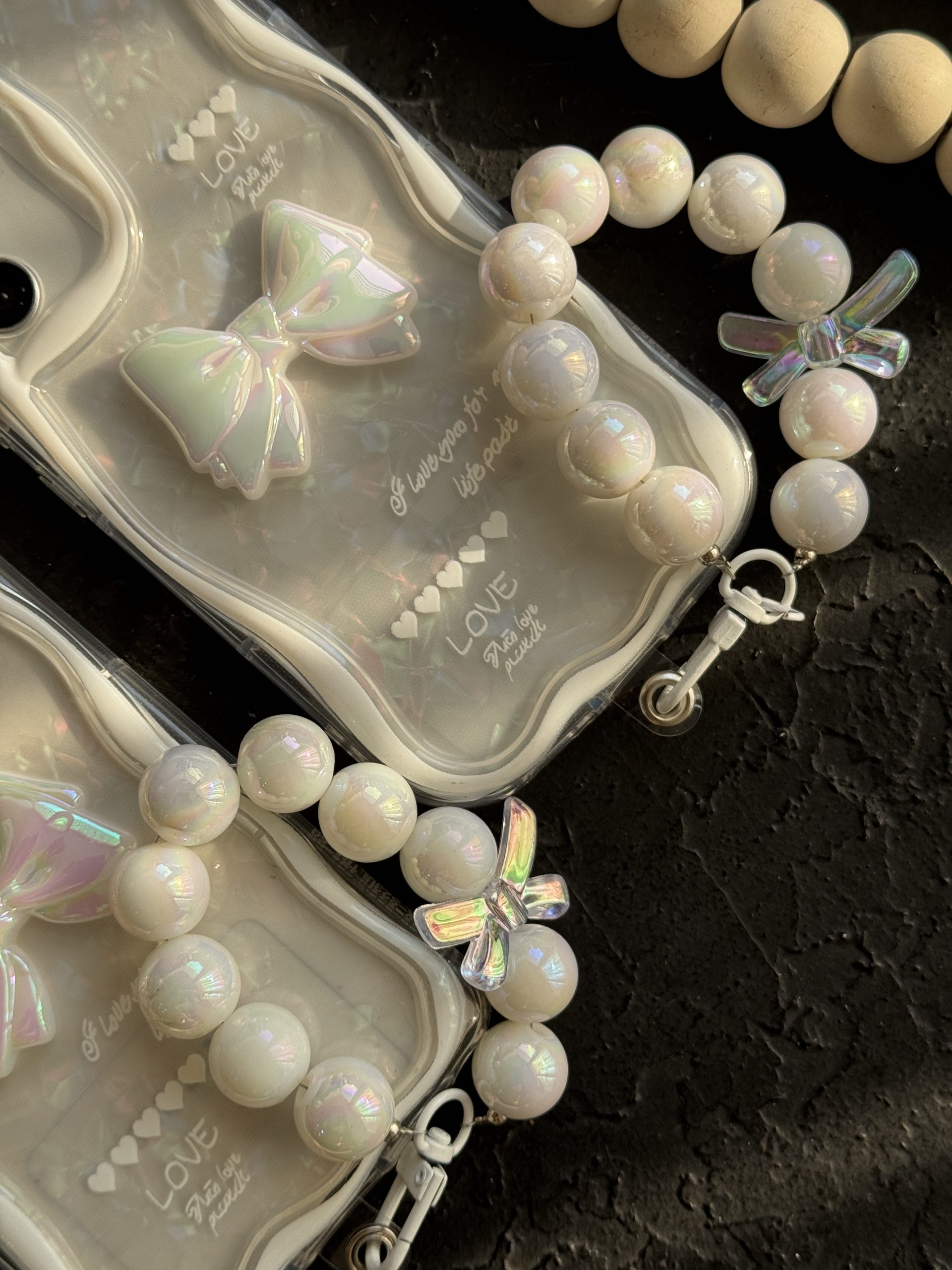 قاب پاپیون یخی با بند مرواریدی آیفون سامسونگ شیائومی