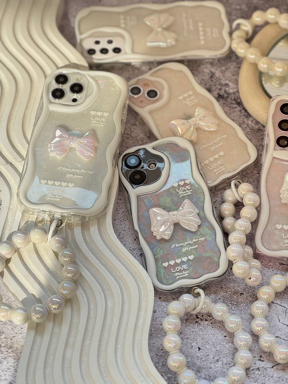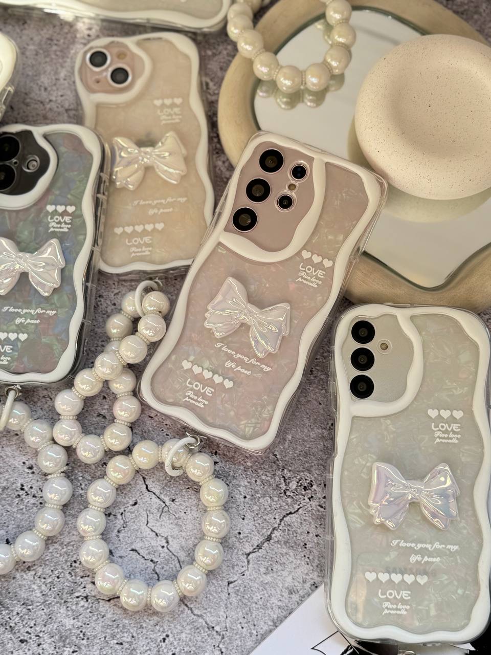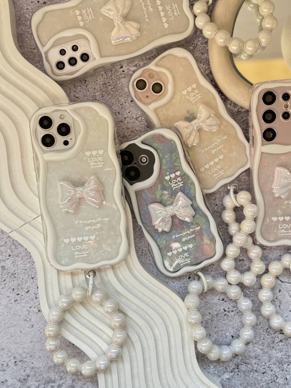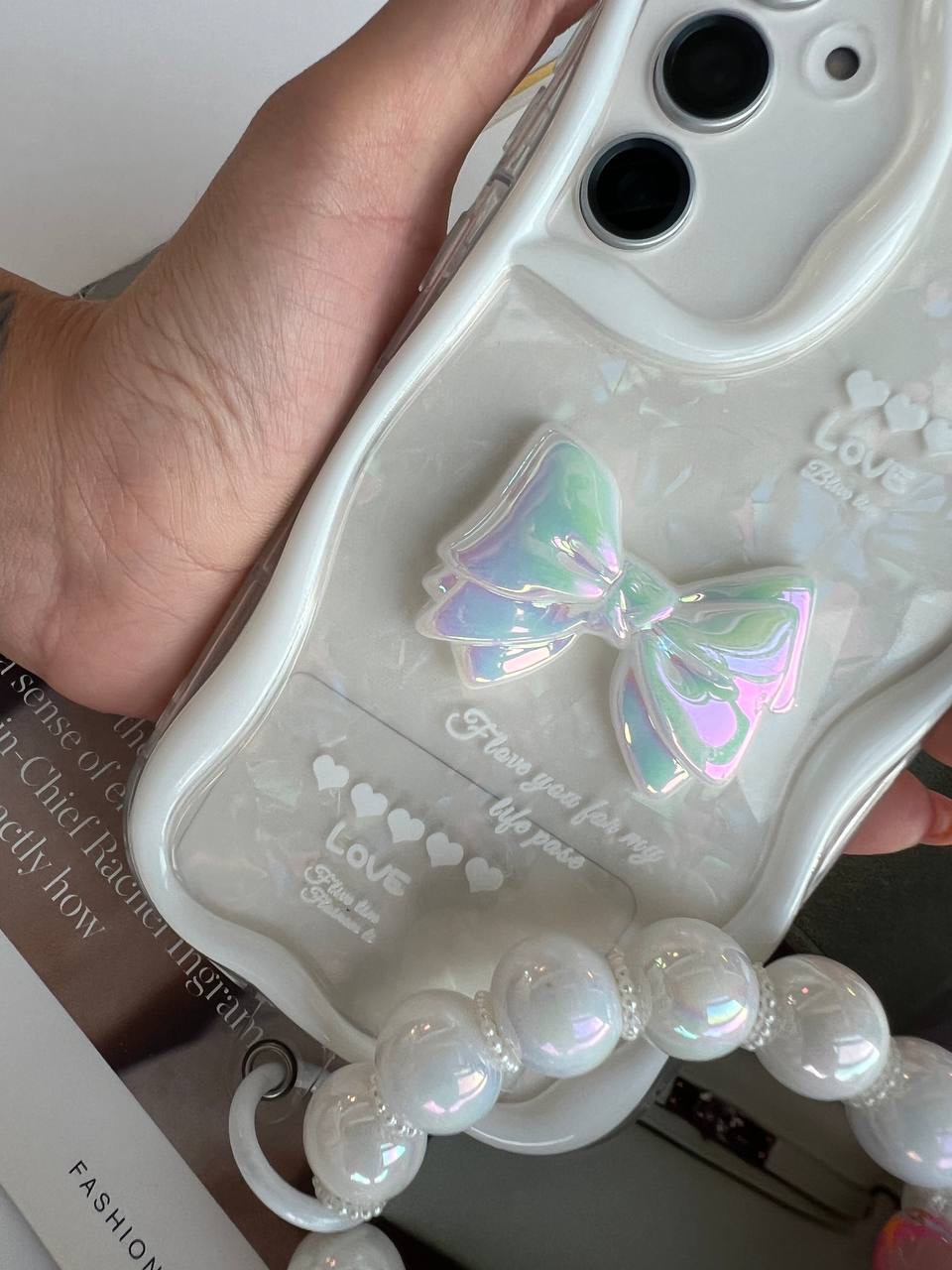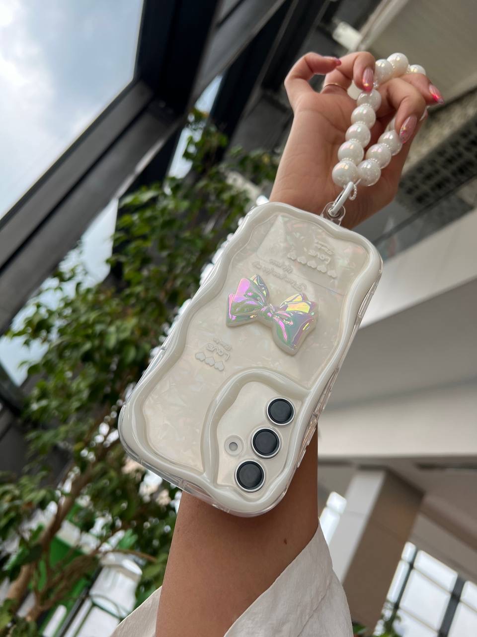 قاب پاپیون یخی با بند مرواریدی آیفون سامسونگ شیائومی