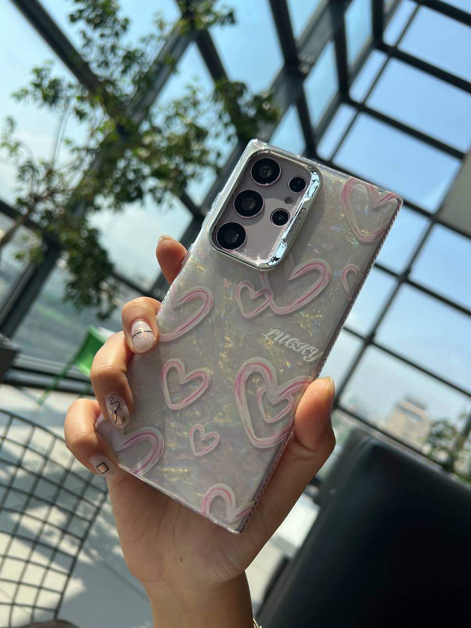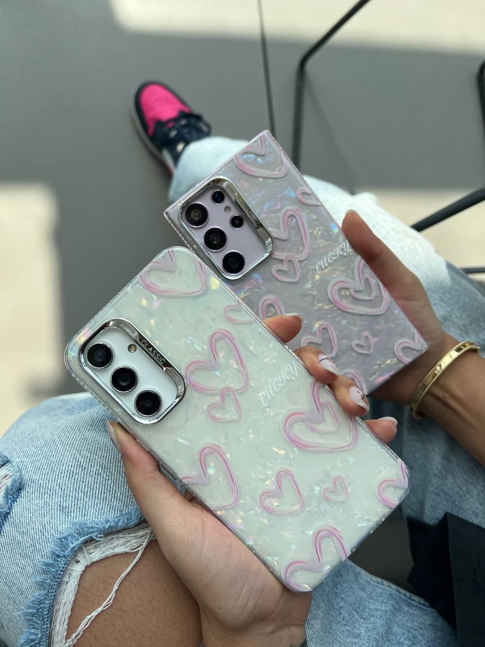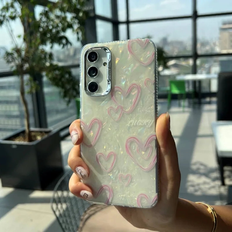قاب قلب صورتی صدفی آیفون سامسونگ