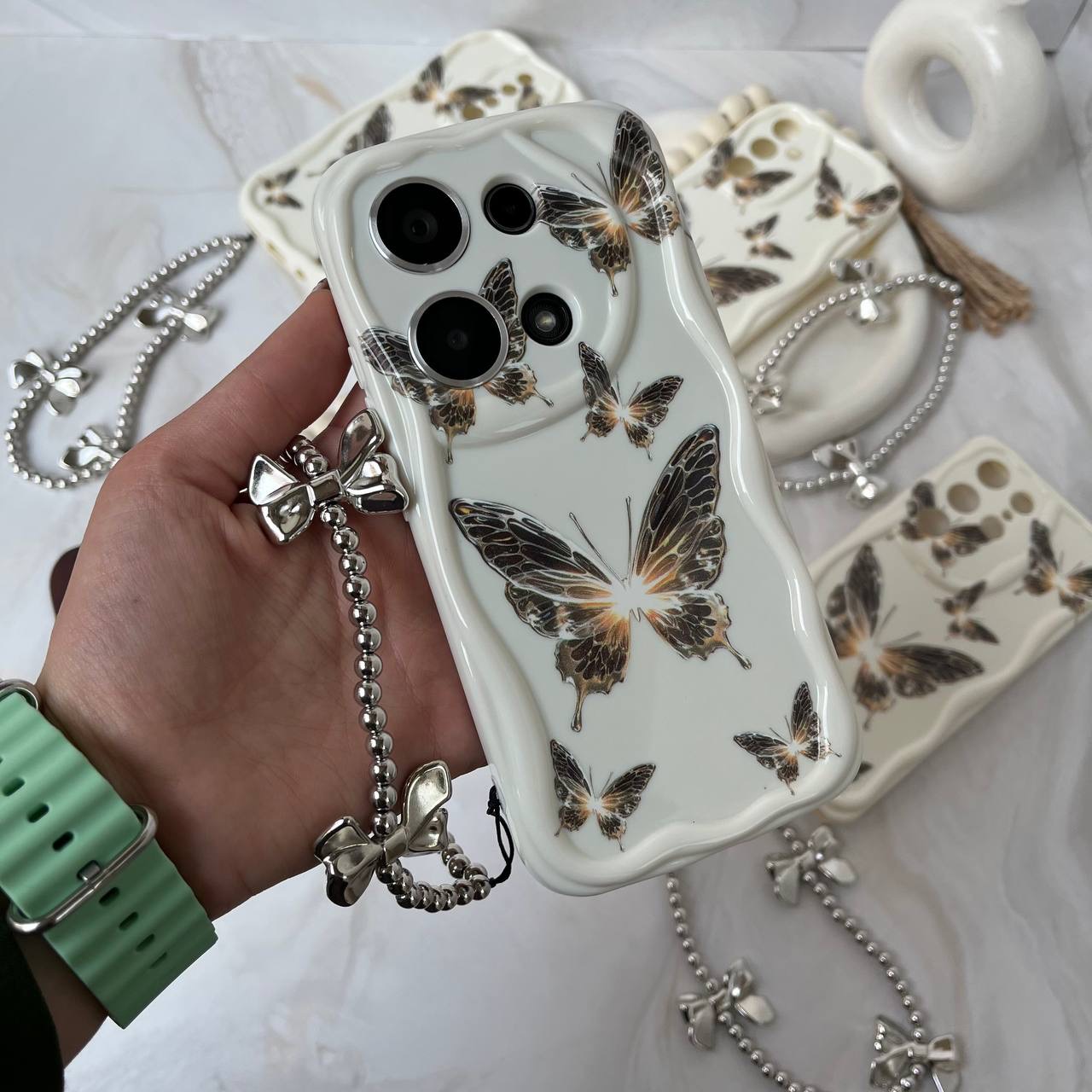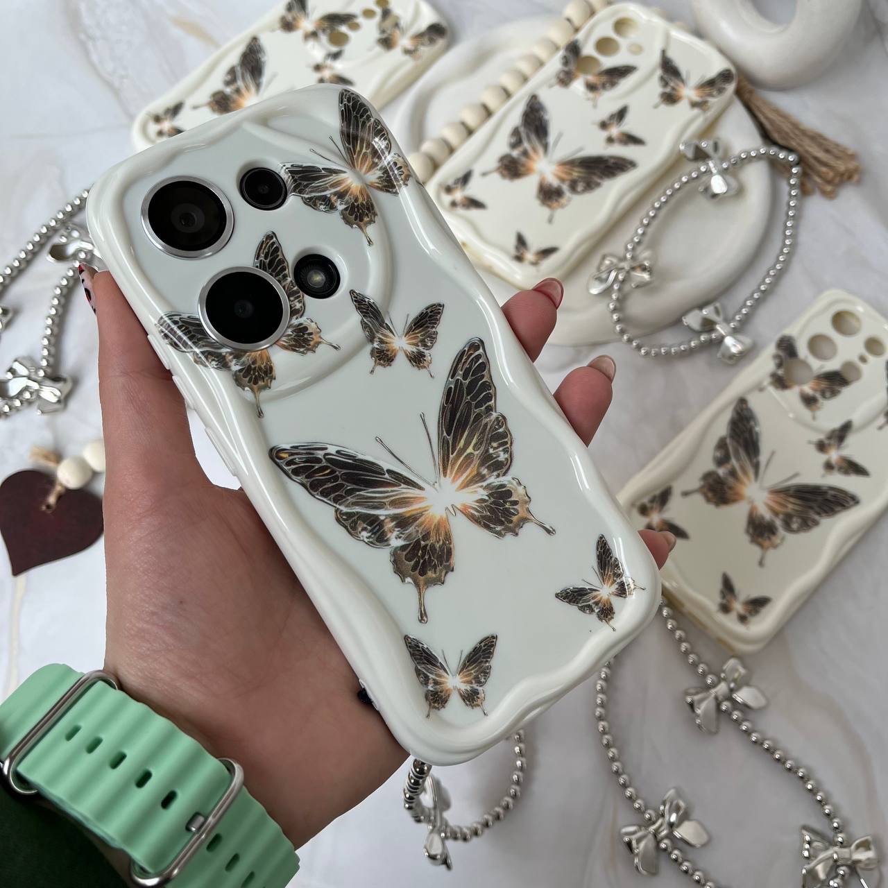 قاب پروانه طلایی با آویز آیفون سامسونگ شیائومی