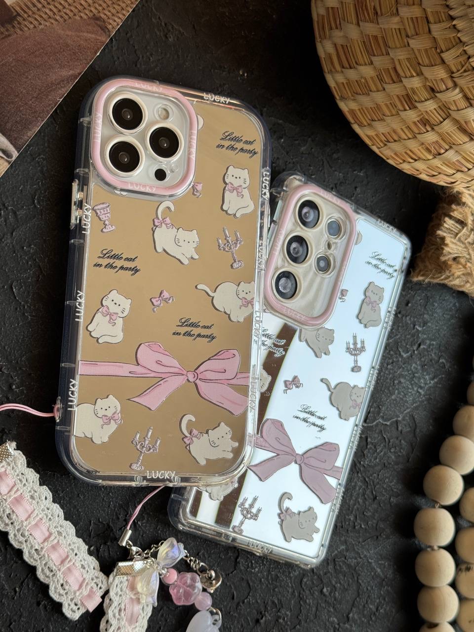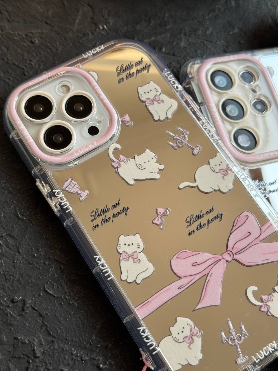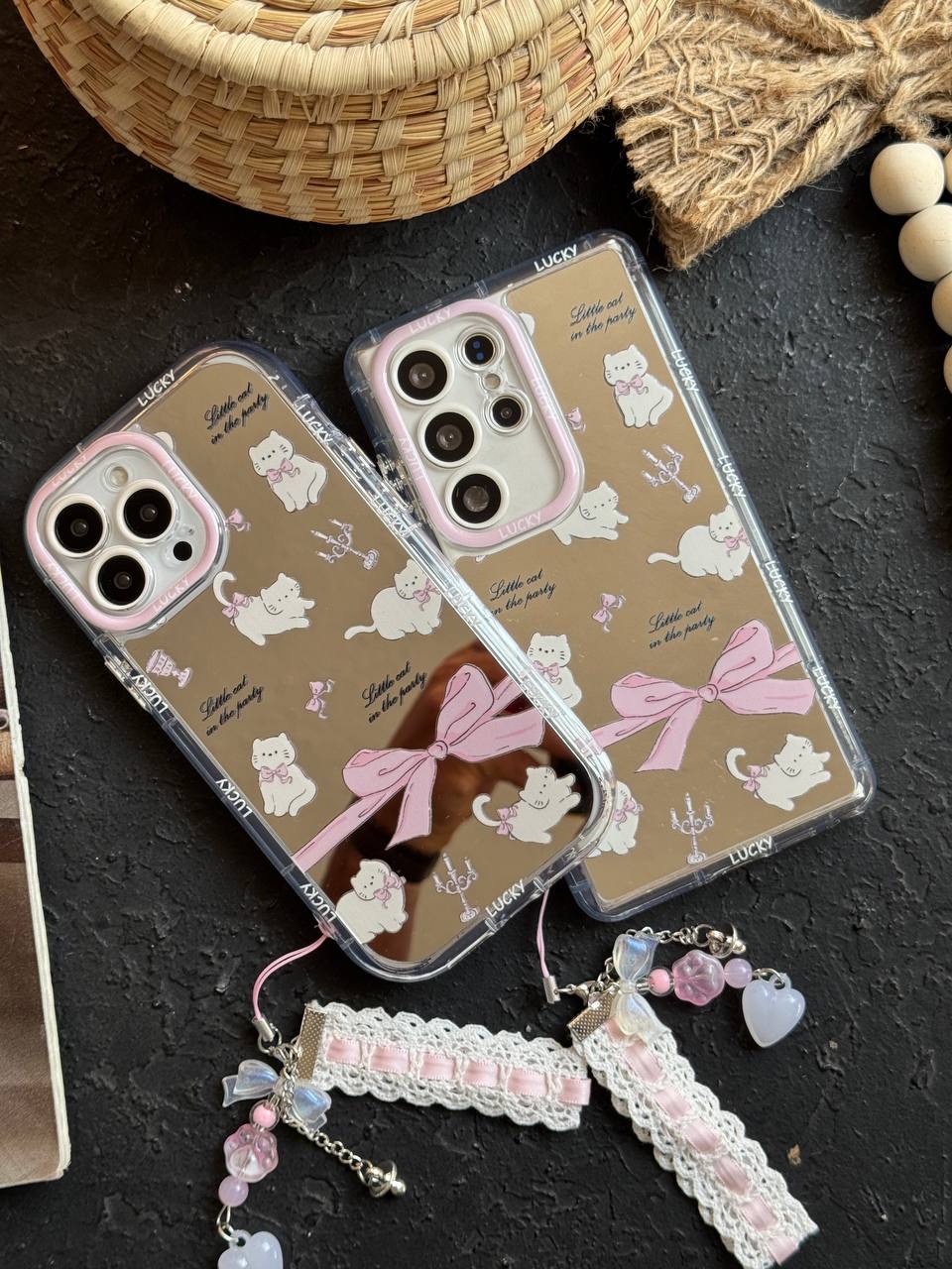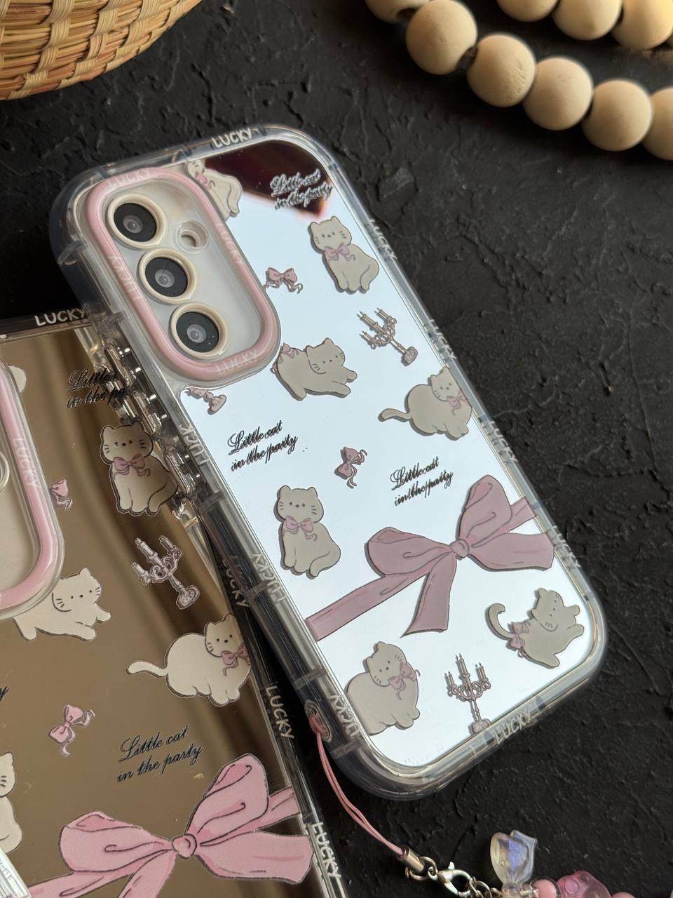 قاب آینه ای گربه پاپیون با بند آیفون سامسونگ