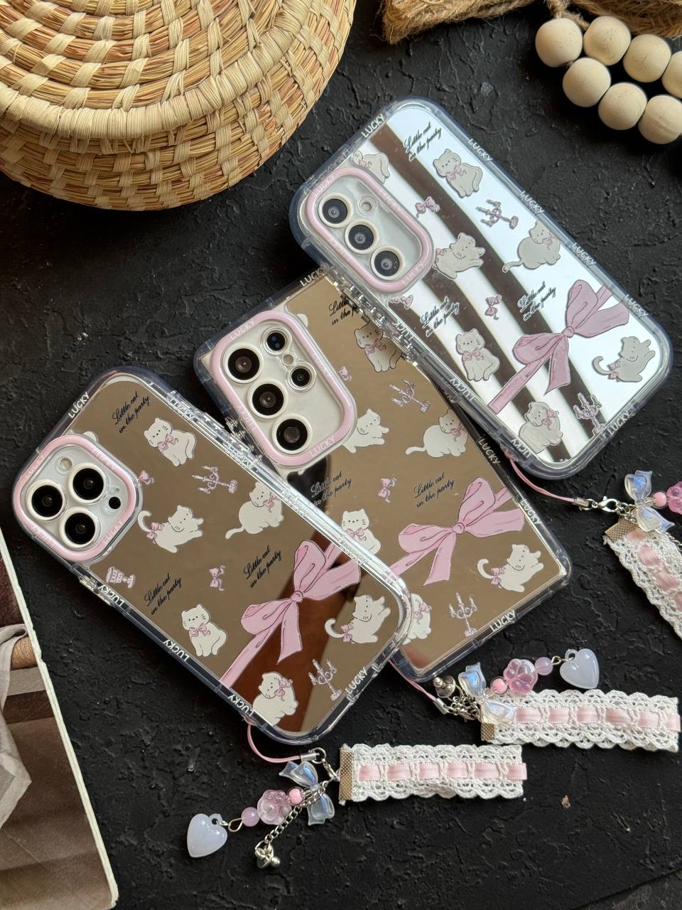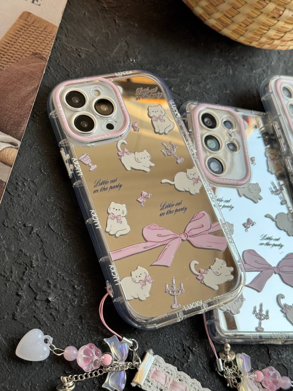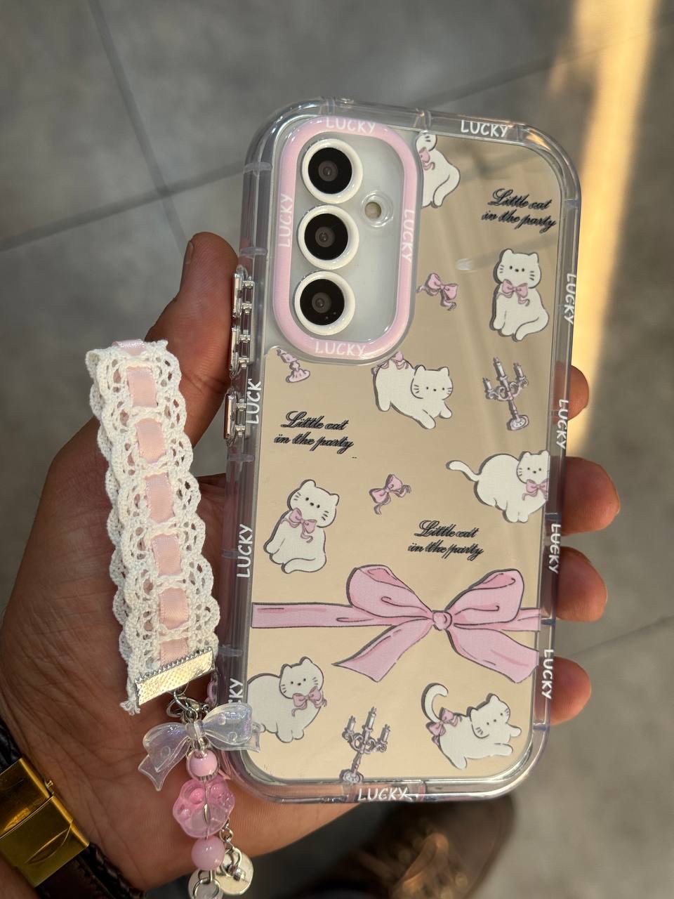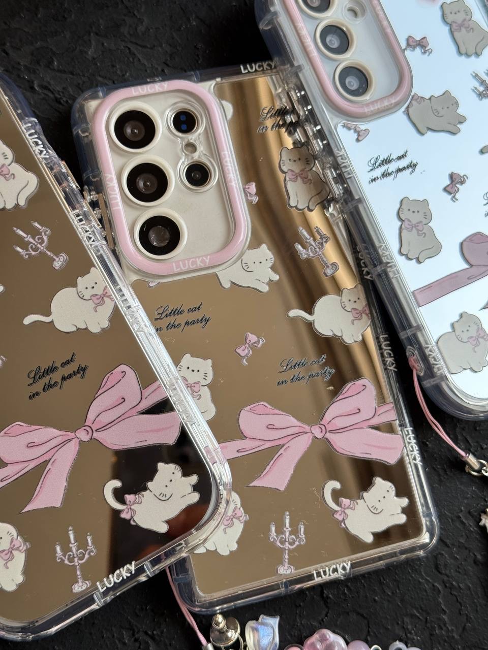 قاب آینه ای گربه پاپیون با بند آیفون سامسونگ