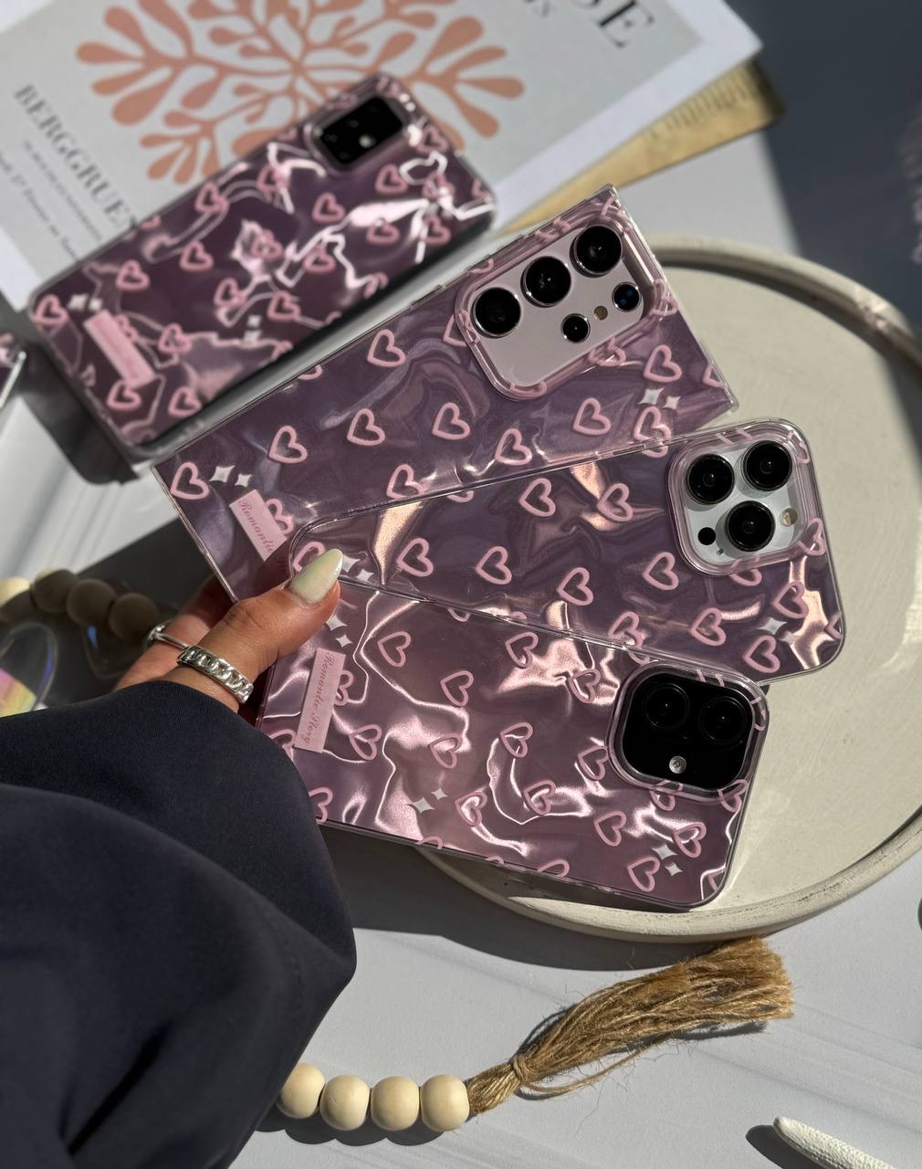 قاب موج قلبی صورتی هولوگرامی آیفون،سامسونگ و شیائومی