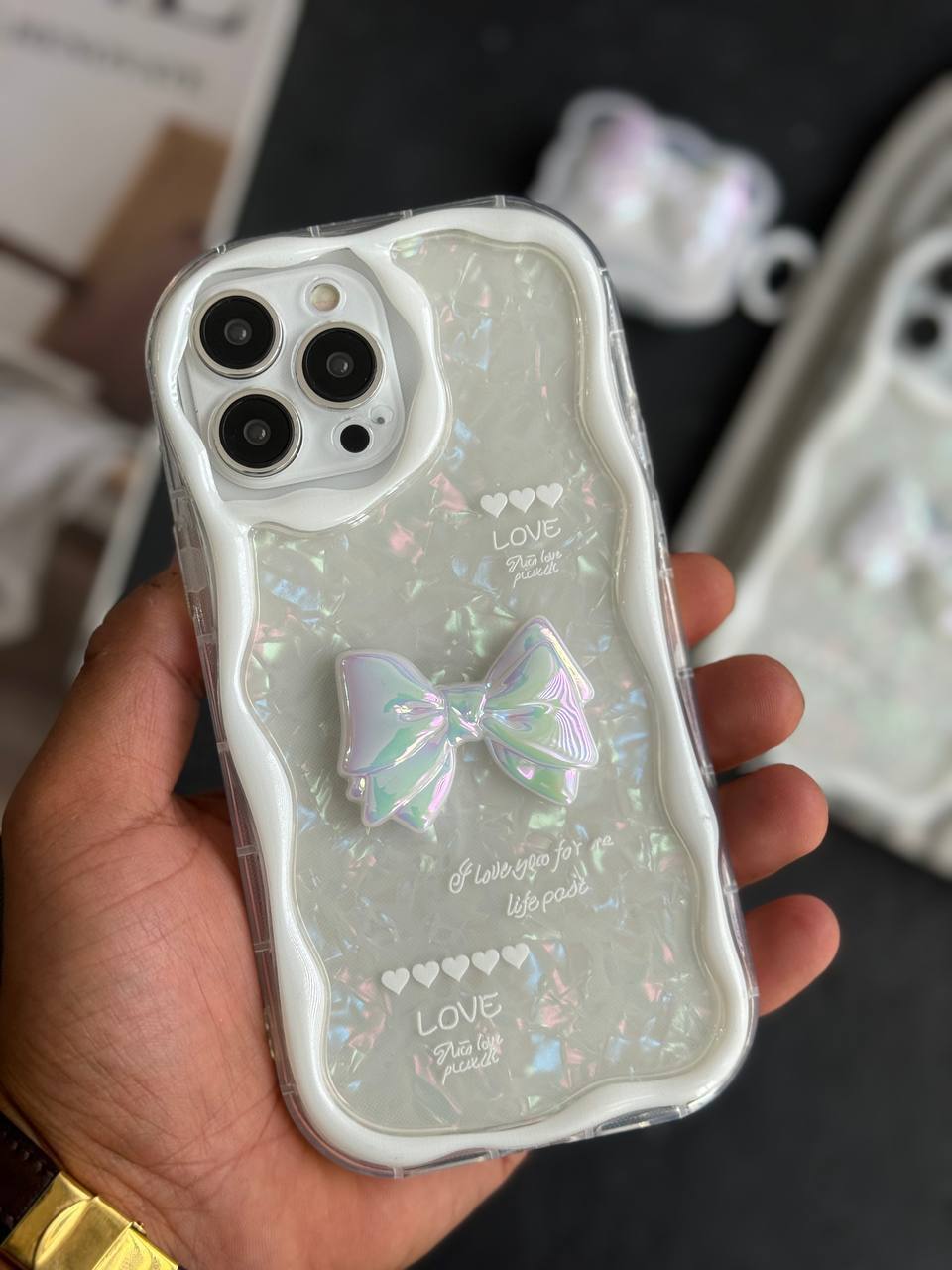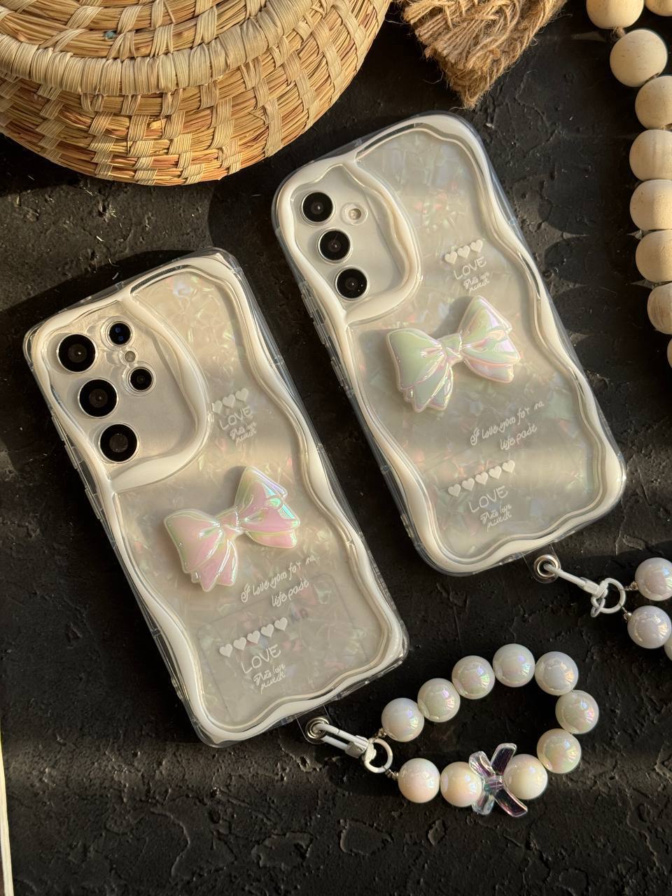 با قاب گوشی پاپیون یخی آویز مروارید، به گوشی آیفون یا سامسونگ خود جلوهای زیبا و منحصر به فرد ببخشید! طراحی شیک و جذاب آن با آویز مروارید، نگاهها را به خود جلب میکند. بهترین محافظت برای گوشیتان همراه با استایلی که خاص شماست. همین حالا خرید کنید و از تلفن خود لذت ببرید!